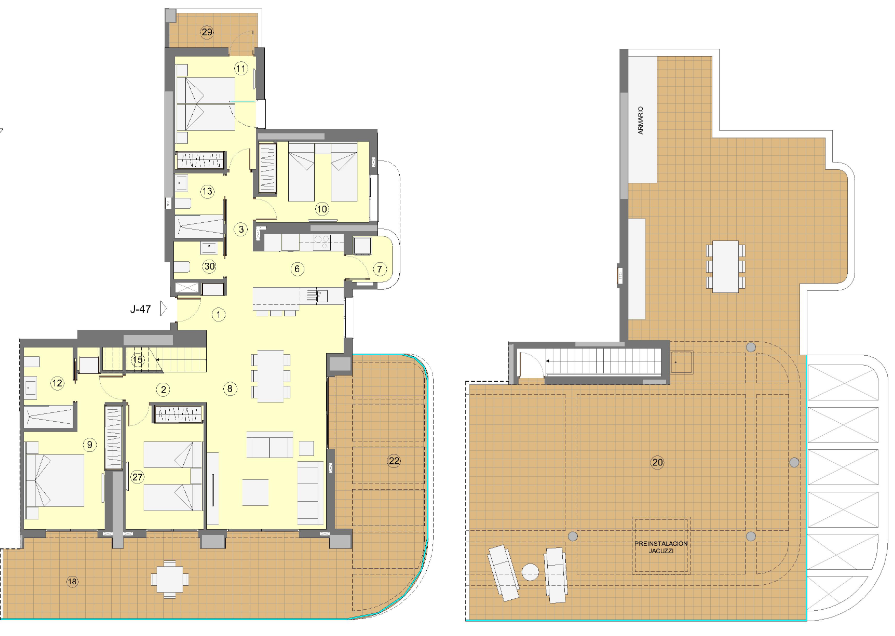 They are homes with 1, 2, 3 and 4-bedroom penthouses with a private solarium with large green areas with several swimming pools, children's and sports areas, a panoramic gym, jacuzzis, etc.