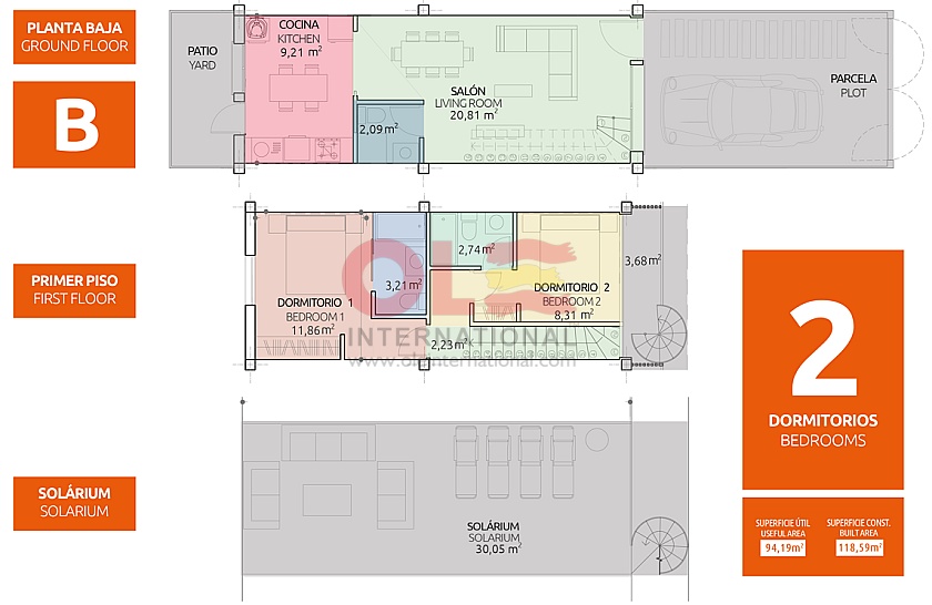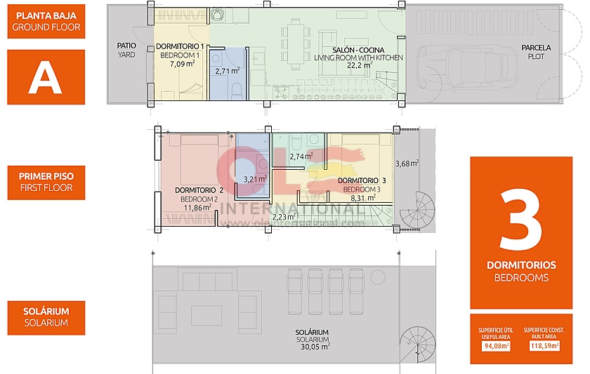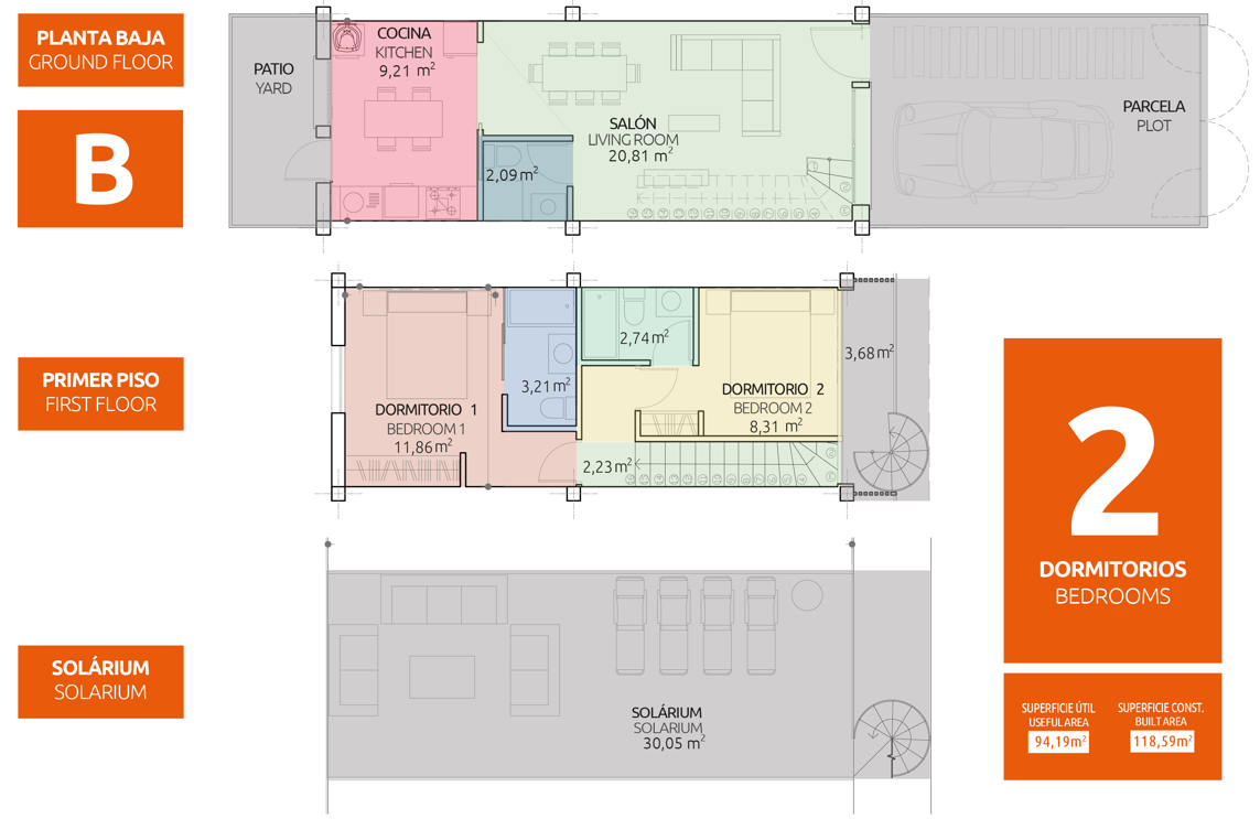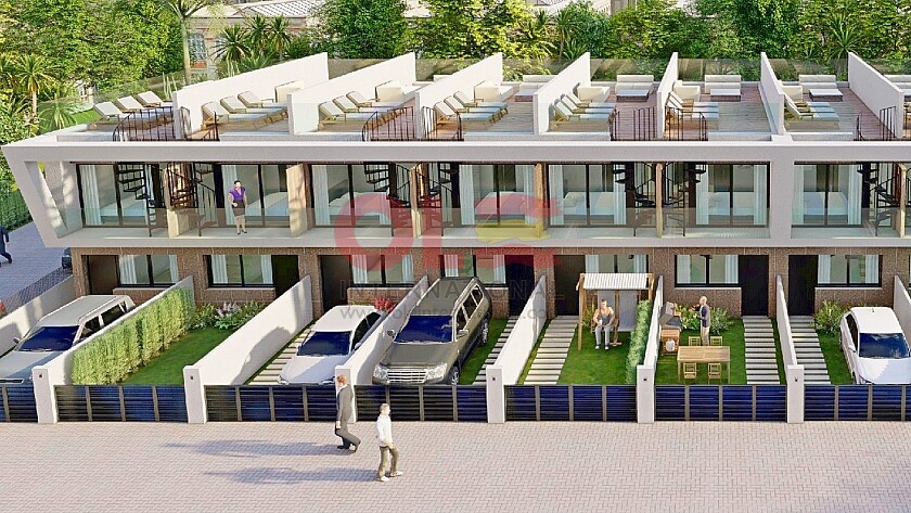 Modern style townhouses with 2 or 3 bedrooms and 2 or 3 bathrooms with private garden and solarium located in Gran Alacant, near the beach and 10 minutes drive to airport.
