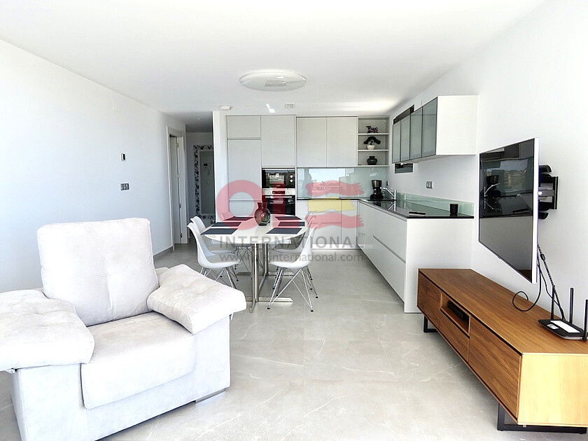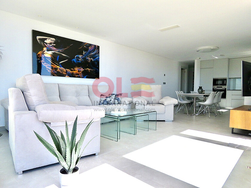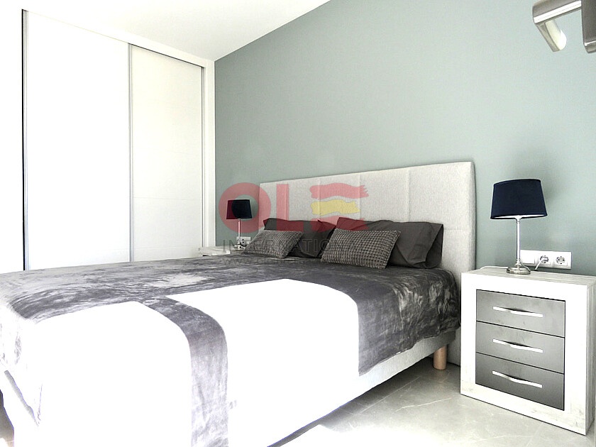 The apartment has 3 bedrooms, 2 bathrooms, living room with open kitchen, 2 terraces and a large solarium with views of the communal areas and the sea. The master bedroom has a bathroom and independent terrace. In the solarium there is a jacuzzi, summer kitchen with barbecue and storage room.