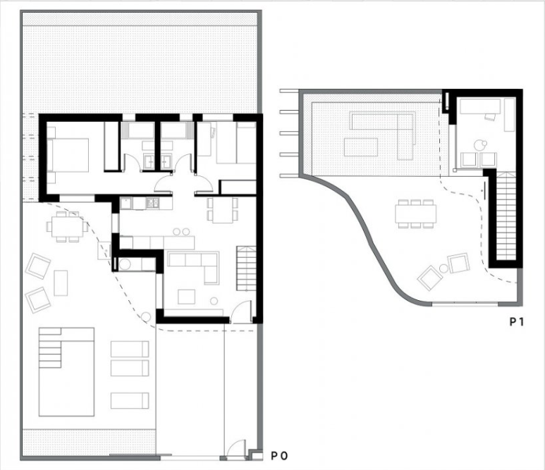 They have an open-plan kitchen with a large living room, built-in wardrobes, a semi-basement, a private terrace and an underground parking space.
