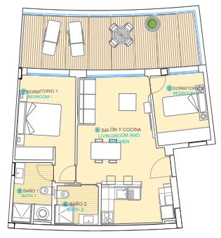 Thanks to their elevated location, the homes have been designed to make the most of natural light and to offer spectacular views of the Mediterranean Sea from their large terraces. The residential has sports areas, restaurants and private security. A few minutes away are commercial areas with a supermarket, restaurants, cinemas and all the services offered by the city of Águilas.