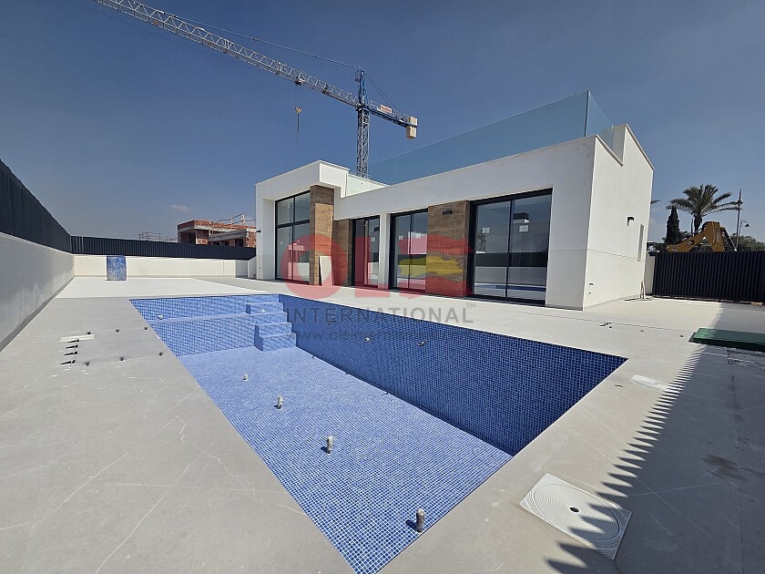 NEW BUILD VILLAS IN CONDADO DE ALHAMA GOLF COURSE New Build residential complex of villas in Condado de Alhama. Villas with 2 bathrooms, 2 bathrooms, open plan kitchen with living room, fitted wardrobes, terrace, private solarium and parking space in the garden. An options private swimming pool at an extra cost. INCLUDED in the price: - ALLOCATED PARKING SPACE in the private garden. - SOLARIUM with outside staircase. - BATHROOMS: the shower screens, vanities, mirrors and the LED lighting embedded in the false ceiling. - KITCHEN: the extractor fan, the LED lighting embedded in the ceiling. - AIR CONDITIONING pre-installed. - BUILT-IN CABINETS are lined. - ELECTRIC BLINDS. - AEROTHERMIA system. - WATER SOFTENER installation. - CHARGING POINT for ELECTRIC [amp;] HYBRID VEHICLE installation. Located into the private enclosed golf resort of Condado de Alhama, between Alhama de Murcia and Mazarrón. Condado de Alhama Golf Resort is a fantastic Golf Resort with many facilities and services . A shopping centre, a sports centre, a variety of bars and restaurants, supermarkets and over 25 communal swimming pools and gardens. Condado de Alhama Golf Resort has its own Jack Nicklaus designed golf course and is only 15 minutes from the beautiful beaches of Bolnuevo and Mazarron. Mazarron has over 35 km of coastline, much of which is unspoilt coastline. Numerous beaches in the Bay of Mazarron have been awarded the Blue Flag for their quality. Condado de Alhama Golf Resort is only 20 minutes from the new Corvera International Airport.